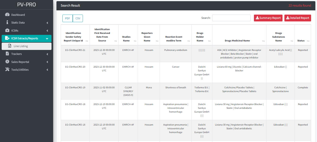 - Comprehensive tools for generating detailed reports on pharmacovigilance data.