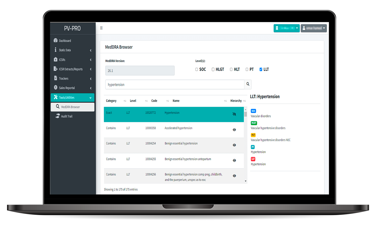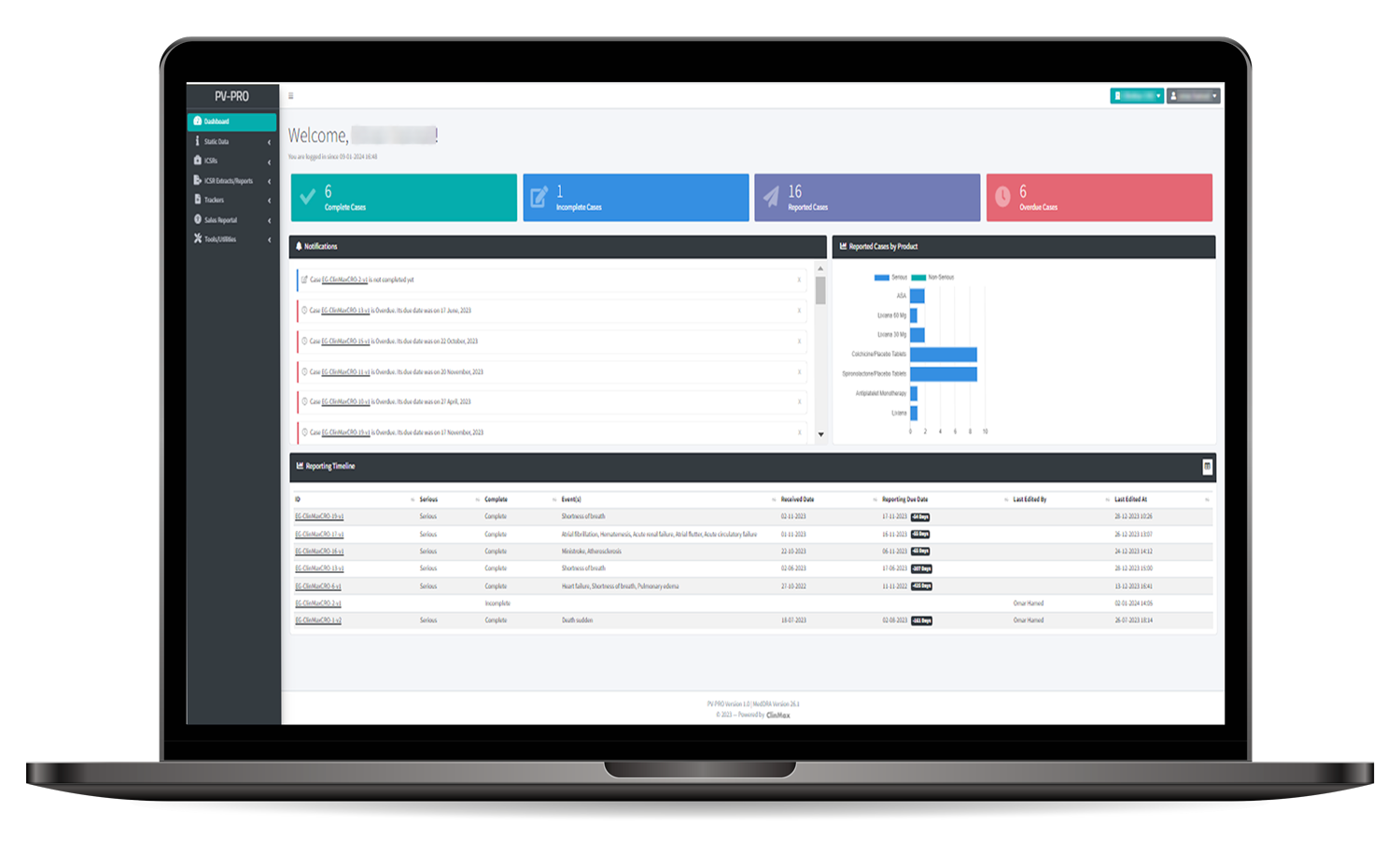 is a pioneering solution at the core of the global pharmacovigilance safety network. With a fully validated ICH E2B-R3 Database and integration with MedDRA, it facilitates comprehensive safety information processing. PV PRO offers a cost-effective solution with its user-friendly interface, streamlining the creation, review, submission, and maintenance of pharmacovigilance event reports alongside with other features supporting the Pharmacovigilance department.
